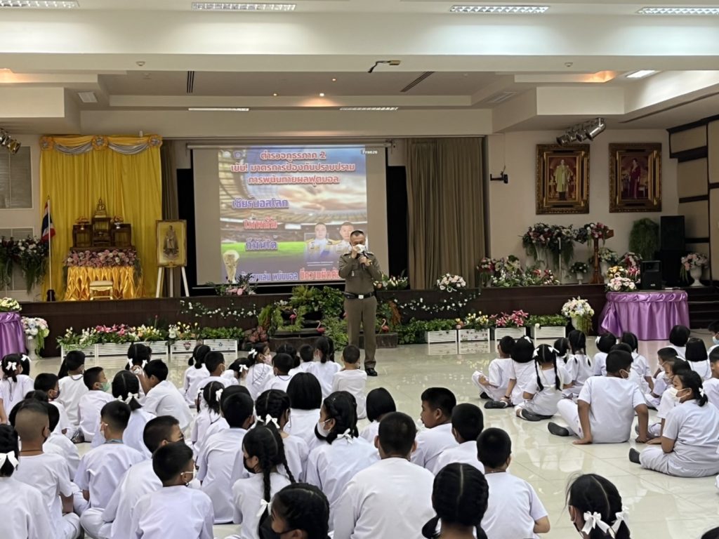 วันที่ ๒๓ พ.ย.๒๕๖๕ เวลา ๑๐.๐๐ น. พ.ต.อ.จิราวัฒน์ ศักดิ์ศรีวัฒนา ผกก.สภ.แหลมฉบัง พ.ต.ท.สิทธิพร กะสิ รอง ผกก.ป.ฯ , พ.ต.ต.ปกรณ์ หมื่นสีเขียว สวป.ฯ พร้อมกำลังตำรวจ สภ.แหลมฉบังได้ประชาสัมพันธ์และบรรยายให้ความรู้เบื้องต้นเกี่ยวกับกฎจราจร , การป้องกันการลักลอบเล่นพนันทายผลฟุตบอลโลกและด้านการป้องกันตนเอง หากมีสถานการณ์ที่อาจกระทบต่อชีวิตและทรัพย์สิน ตลอดจนวิธีเอาตัวรอดเมื่อตกอยู่ในสถานการณ์ที่คับขัน ไม่ปลอดภัย (อาทิเช่น เหตุ Active Shooter, บุคคลคลุ้มคลั่ง วิกลจริต