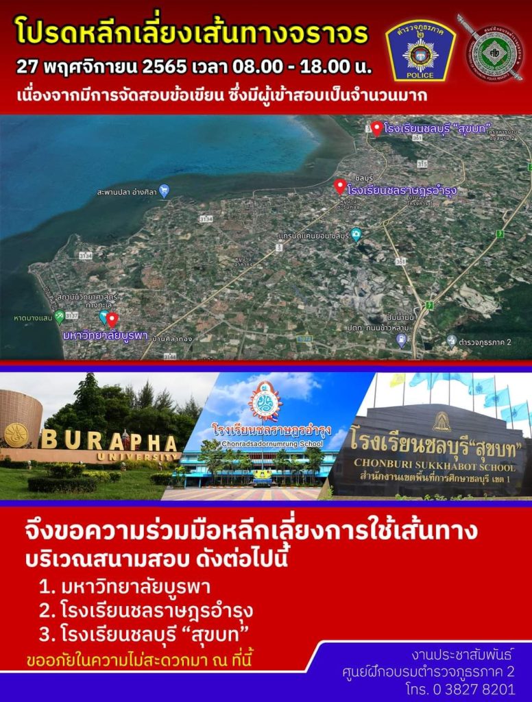 จึงขอความร่วมมือหลีกเลี่ยงการใช้เส้นทาง บริเวณสนามสอบ ดังต่อไปนี้