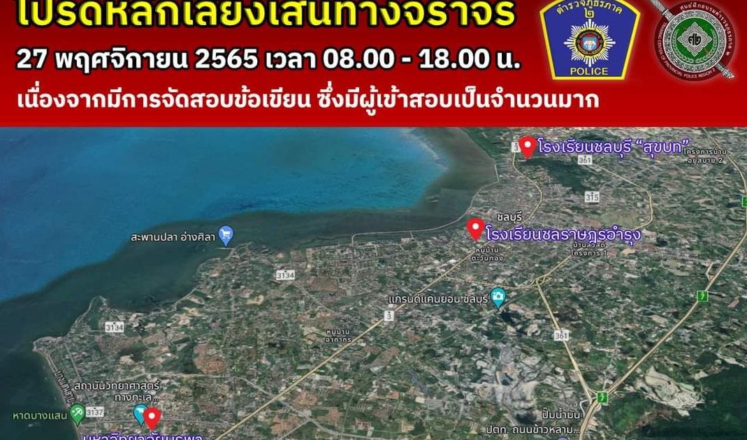 จึงขอความร่วมมือหลีกเลี่ยงการใช้เส้นทาง บริเวณสนามสอบ ดังต่อไปนี้