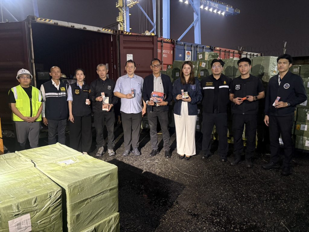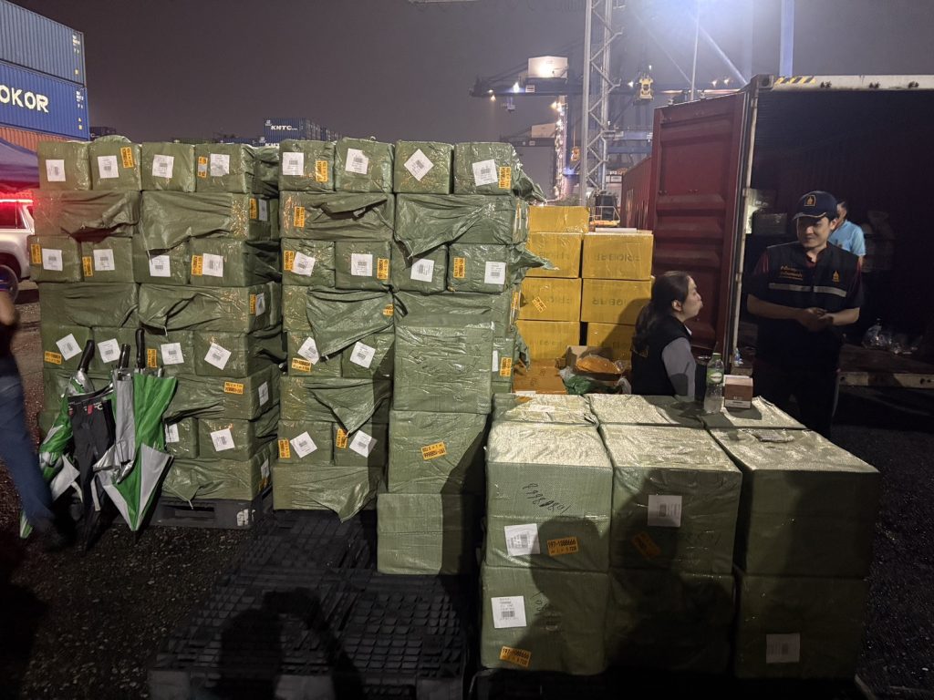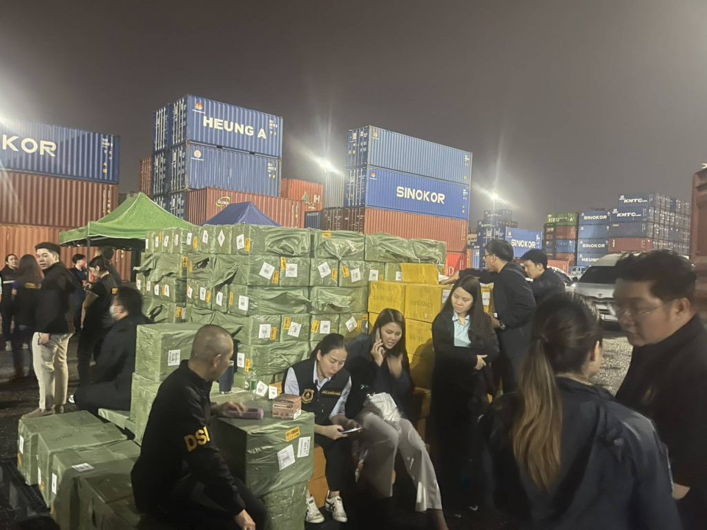 วันที่ 7 มี.ค.68 ช่วงเวลาประมาณ 12.00 น. – 19.00 น. ภายใต้อำนวยการสั่งการของ พล.ต.อ.ประจวบ วงศ์สุข รอง ผบ.ตร. พล.ต.ท.อัครเดช พิมลศรี ผู้ช่วย ผบ.ตร. พล.ต.ท.ยิ่งยศ เทพจำนงค์ ผบช.ภ.2 พล ต.ต.ชัยยพจน์ สูวรรณรักษ์ รอง ผบช.ภ.2 พล.ต.ต.ธวัชเกียรติ จินดาควรสนอง ผบก.ภ.จว.ชลบุรี พ.ต.อ.พาติกรณ์ ศรชัย รอง ผบก.ภ.จ.ชลบรี นำโดย พ.ต.อ.ไตรเทพ แพทย์รัตน์ ผกก.สภ.แหลมฉบัง , พ.ต.อ.เฉลิมศักดิ์ เถียรทองศรี ผกก.สส.2 บก.สส.ภ.2 , พ.ต.อ.ภาสกร ไพจิตต์ ผกก.สส.ภ.จ.ชลบุรี ,พ.ต.ท.ณัฐวัฒน์ ธนจริวัฒน์ รอง ผกก.ป.สภ.แหลมฉบัง พ.ต.ท.ราชภิภพ ขุมทรัพย์ รอง ผกก.สส.สภ.แหลมฉบัง สนธิกำลัง สนง.ศุลกากรท่าเรือแหลมฉบัง นำโดย คุณวุฒิ เร่งประดุงทอง ผอ.สนง.ศุลกากรท่าเรือแหลมฉบัง พร้อม จนท.ฝ่ายปราบปราม และ จนท.กองสืบสวนและปราบปราม ศุลกากรท่าเรือแหลมฉบัง และ จนท.กรมสอบสวนคดีพิเศษ