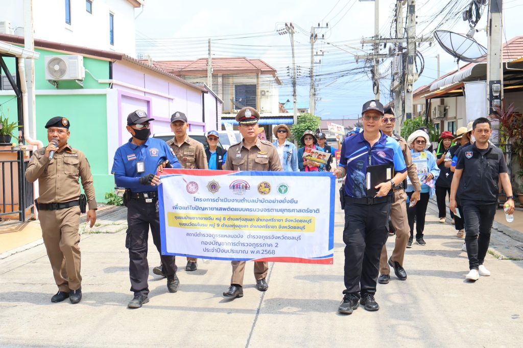 ลงพื้นที่เป้าหมายประชาสัมพันธ์ เอกซเรย์ (X-Ray) ค้นหาผู้เสพสมัครใจเข้ารับการบำบัดรักษา บริเวณคุ้มชุมชน ชุมชนวัดมโนรม ม.9 ต.ทุ่งสุขลา อ.ศรีราชา จ.ชลบุรี พร้อมทั้งได้ทำ MoU ครัวเรือน