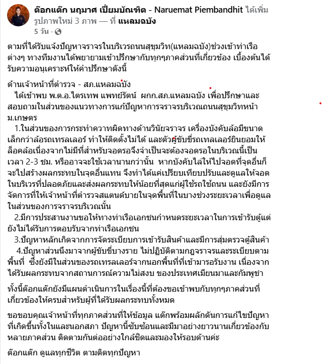 สภ.แหลมฉบังได้รับการประสานจาก ว่าที่สส.เขต6 ชลบุรี พรรคประชาชนต๊อกแต๊ก นฤมาศ เปี่ยมบัณฑิต – Naruemat Piembandhit